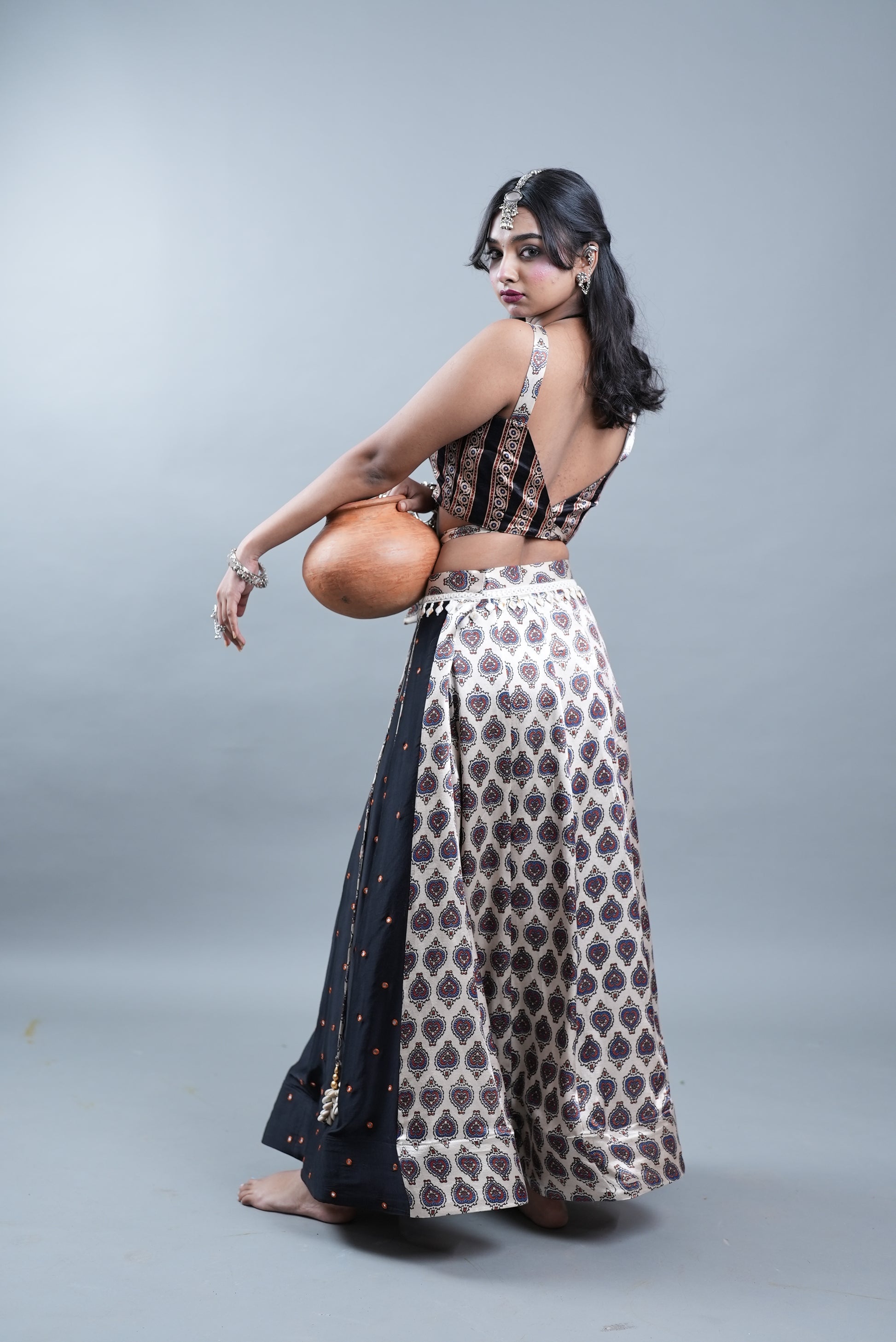 Rasiya Ajrak Print 2 Piece Lehenga in Modal Silk - Silver