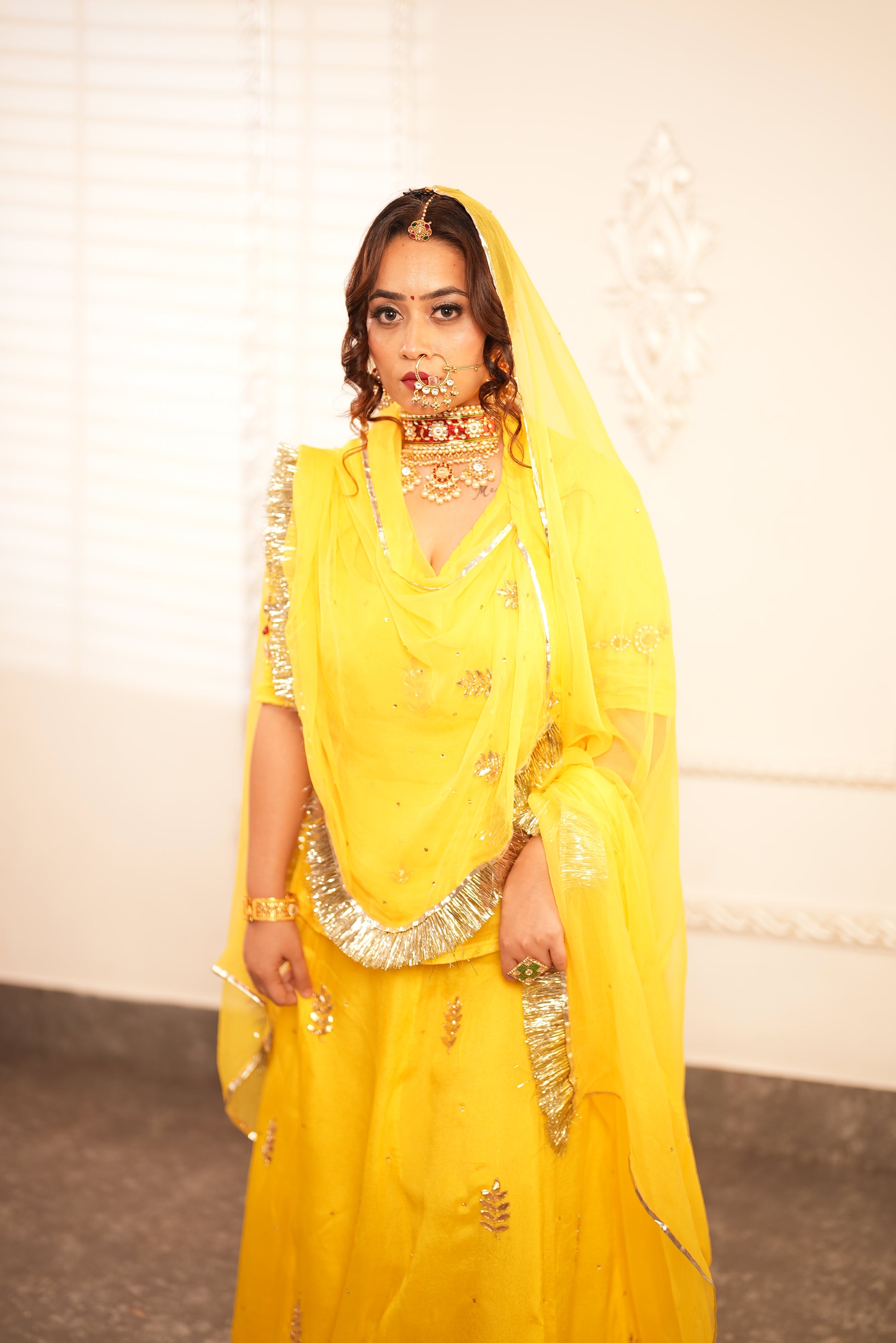 Rajput Poshak in Silk and Pure Chiffon - Yellow