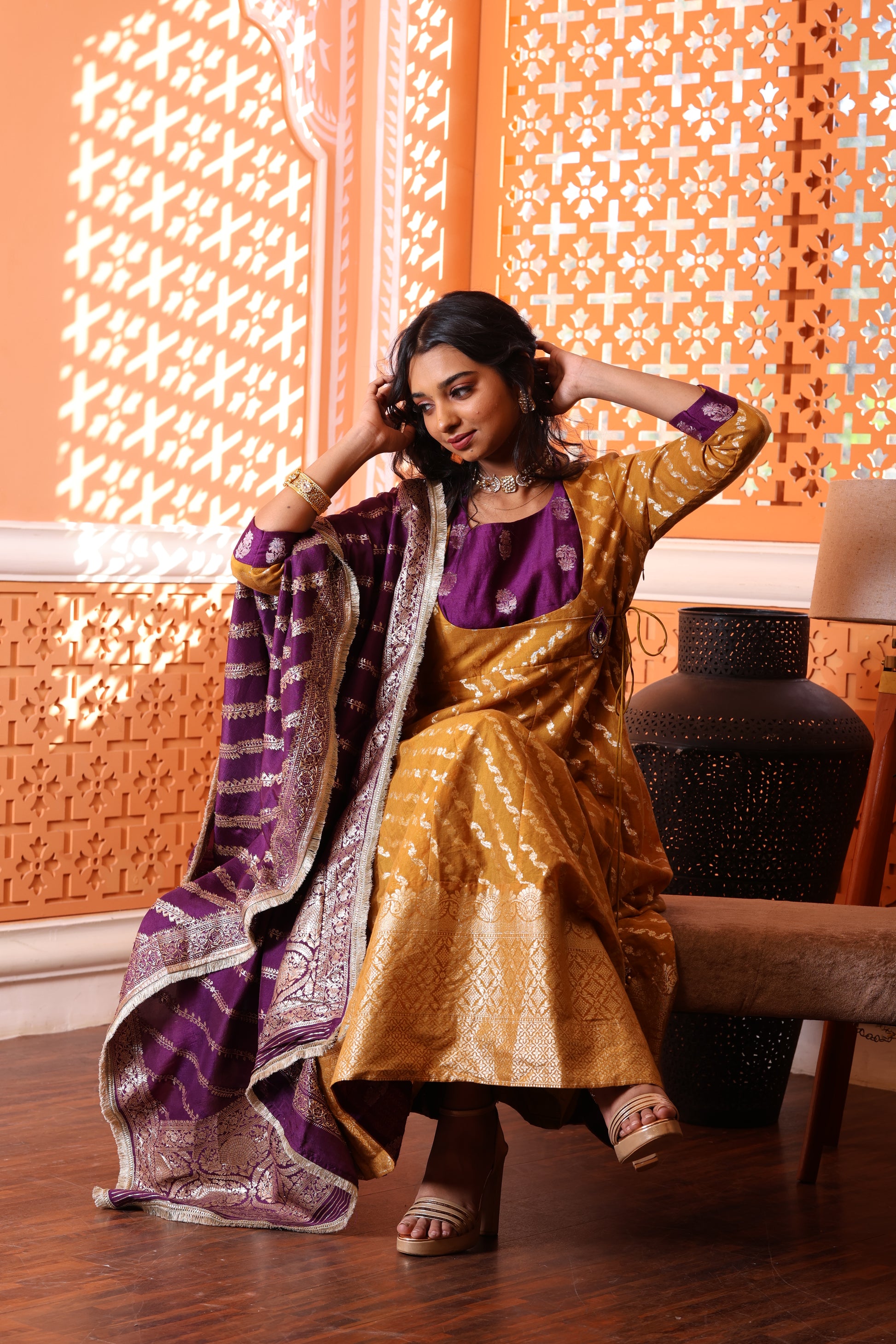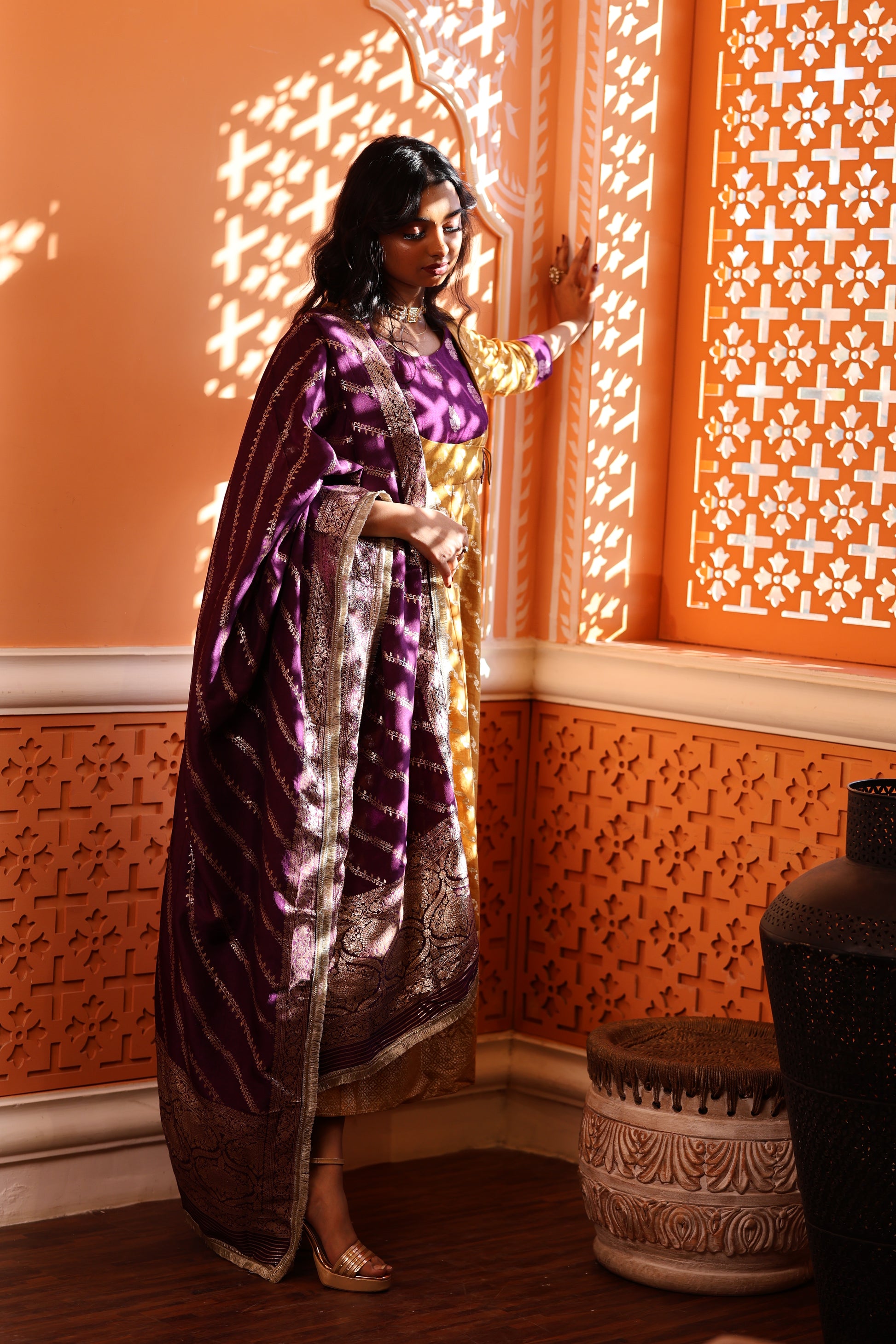 - Heavy Banarasi zari dupatta adds luxury