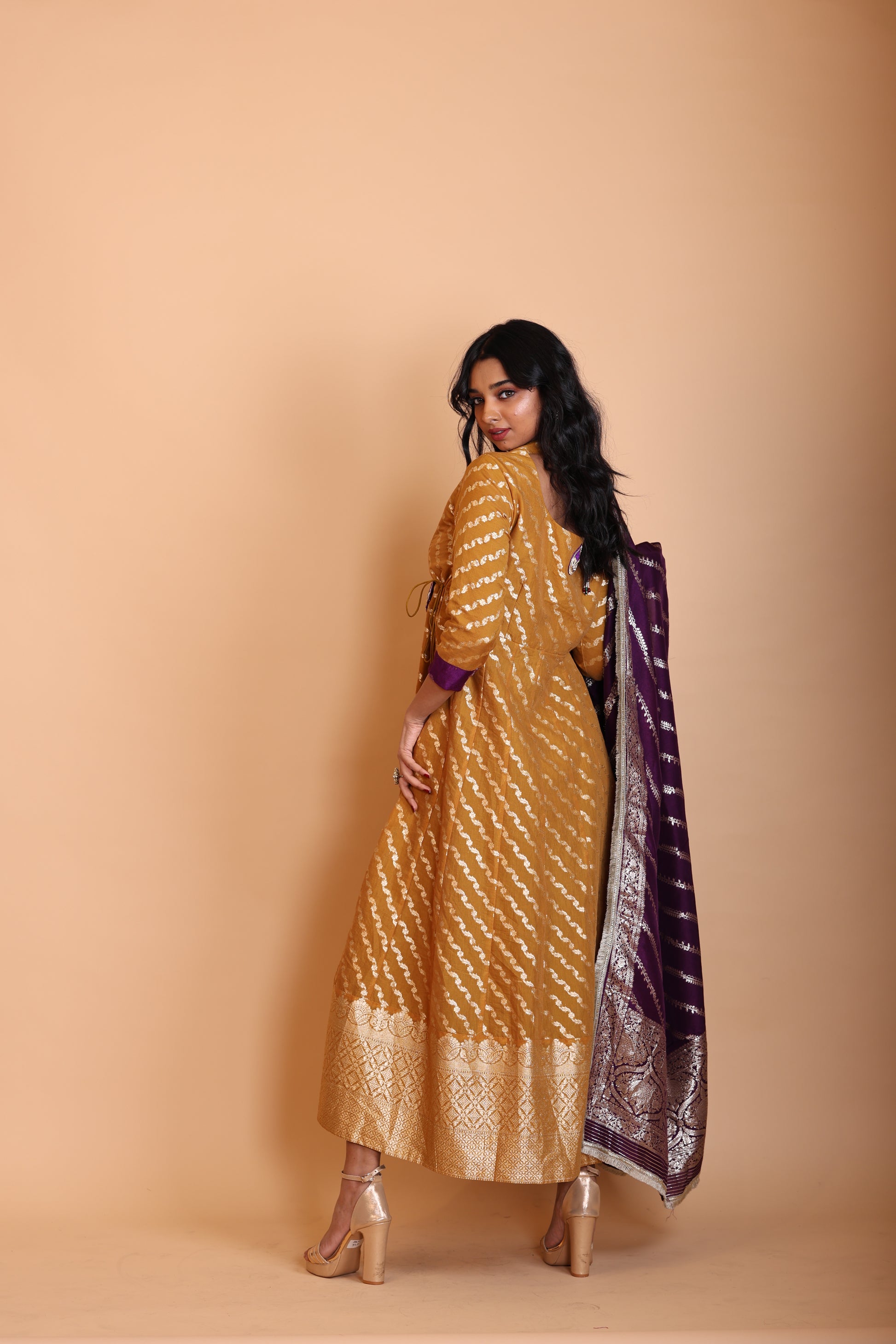 - Colour: Crome yellow and purple suit with matching dupatta